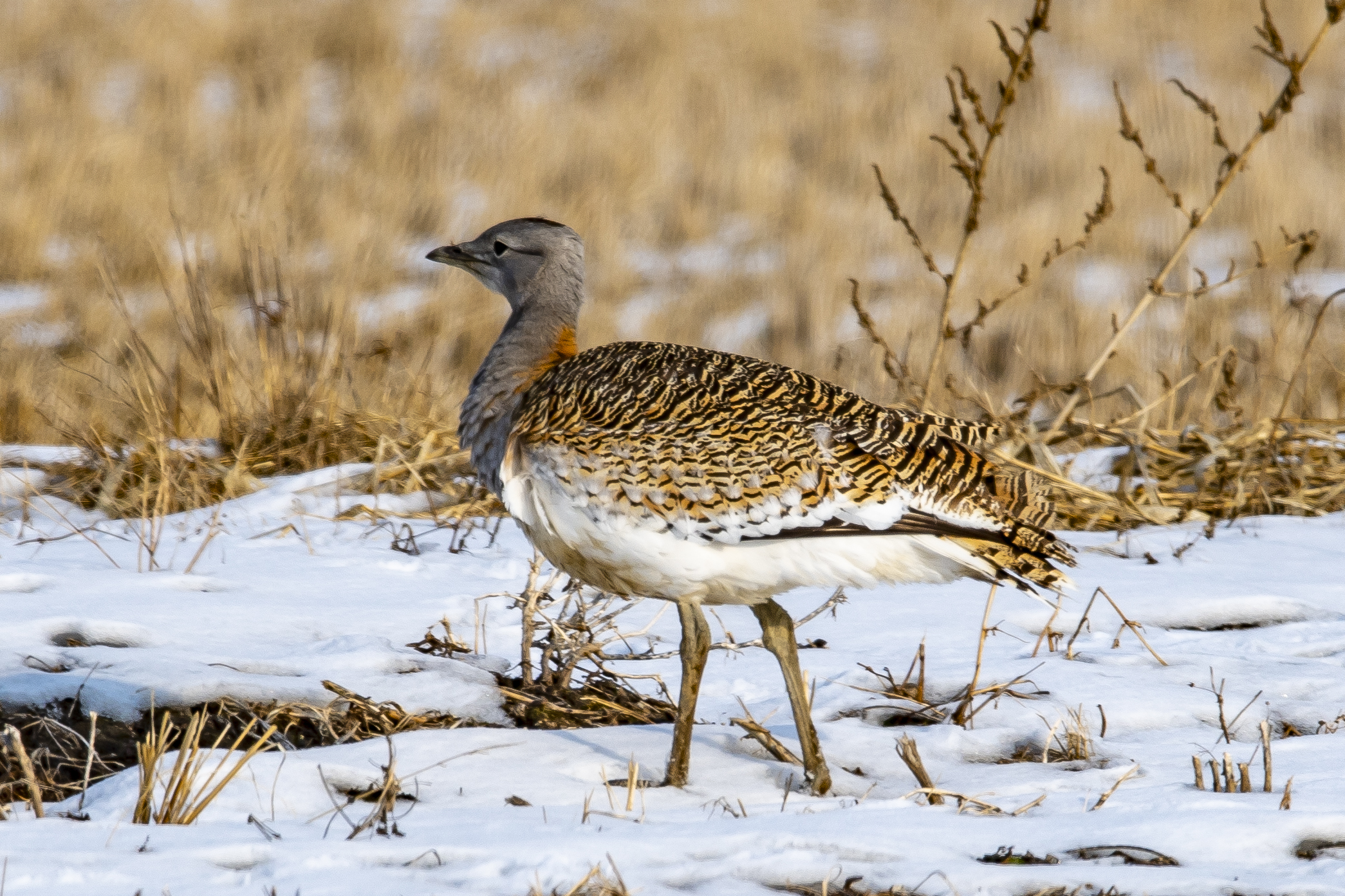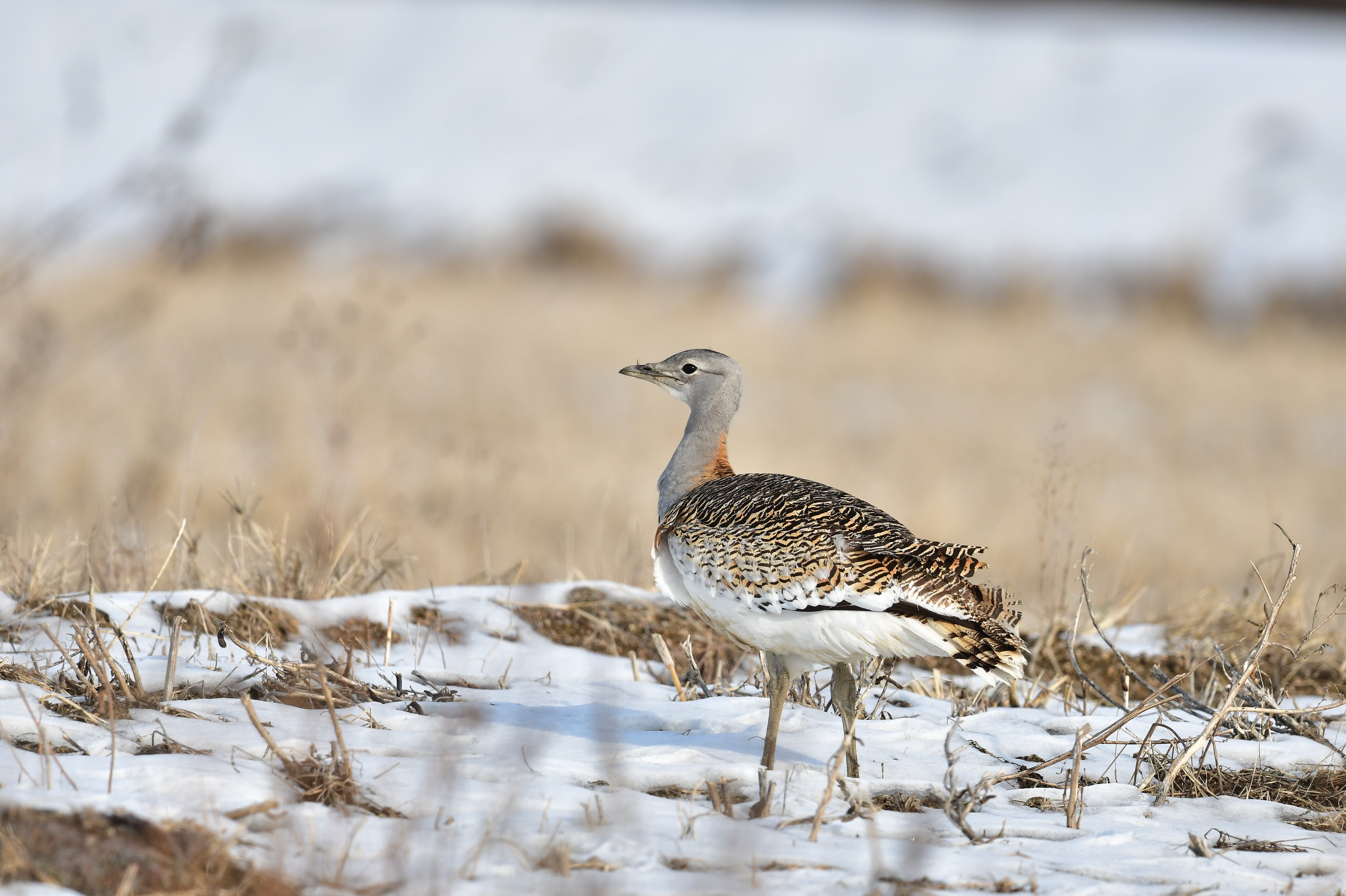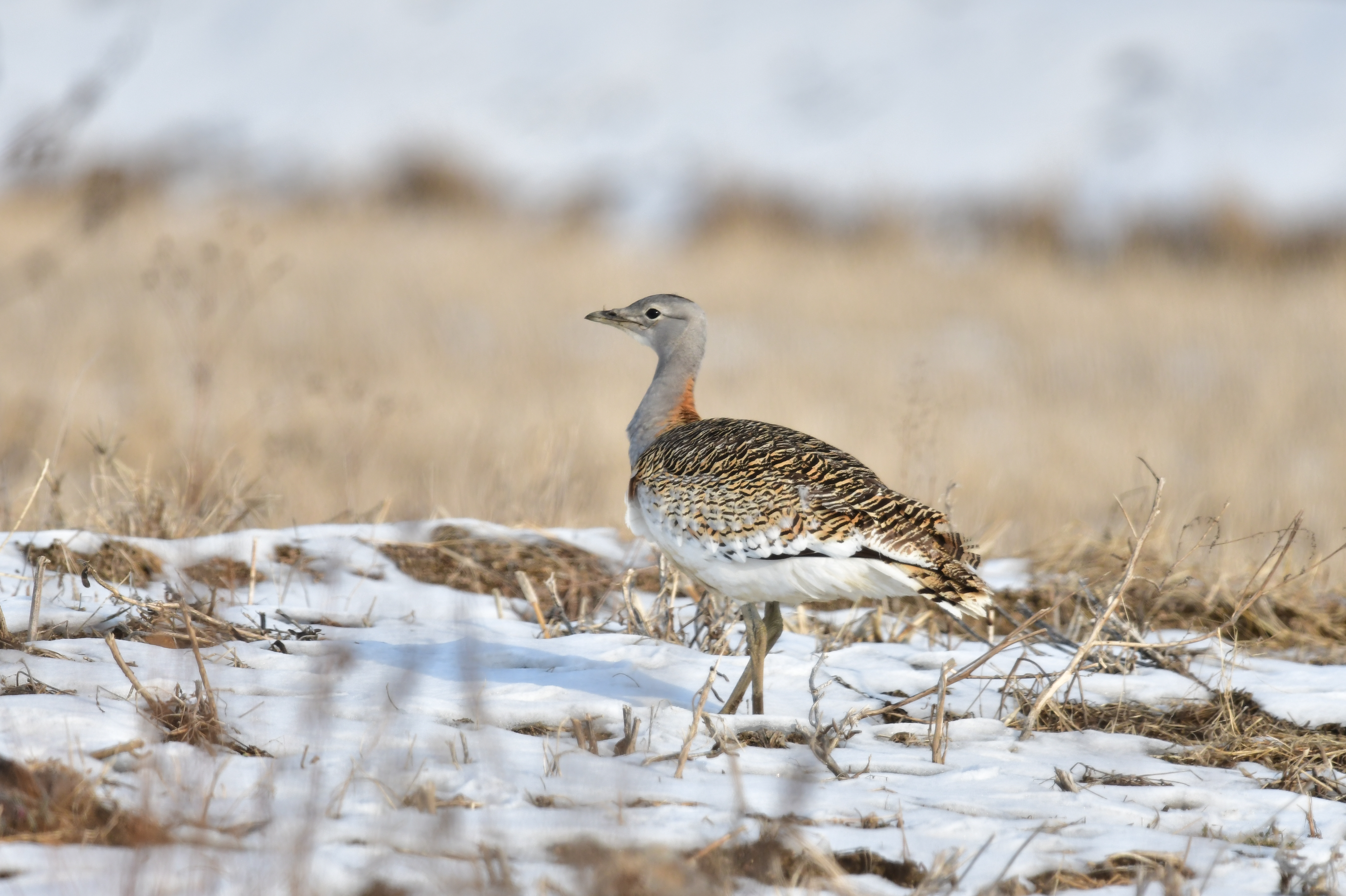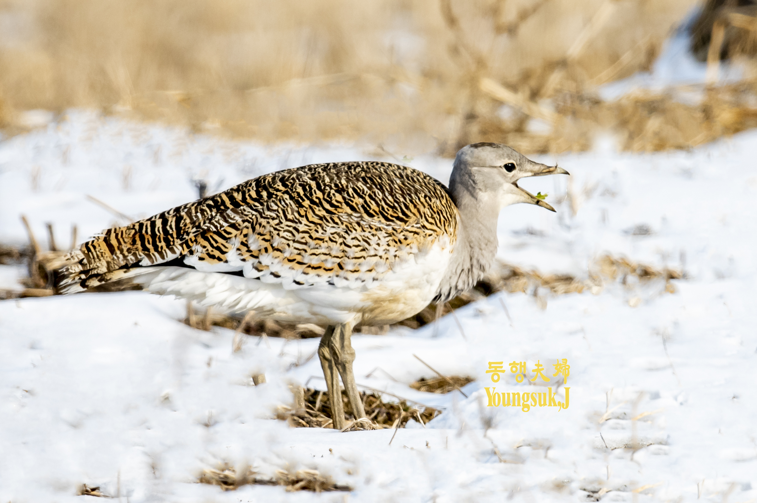 몸길이는 수컷이 102cm, 암컷이 76cm로 수컷이 훨씬 큽니다. 수컷은 목에서 가슴까지 짙은 갈색이고 암컷은 회색입니다. 남자의 가슴에는 갈색 띠가 있지만 여자는 없다. 부리는 황갈색이고 꼬리는 흑갈색으로 엷은 검은색 가로무늬가 있으며 배는 흰색이다. 주로 넓은 평야, 경작지, 잡초가 적은 곳에 둥지를 틀고 2~3개의 알을 낳는다. 당신의 성격은 경계선이 강합니다. 한국전쟁 이전에는 우리나라에서 흔히 볼 수 있는 겨울새였지만 지금은 희귀한 새가 되었습니다.