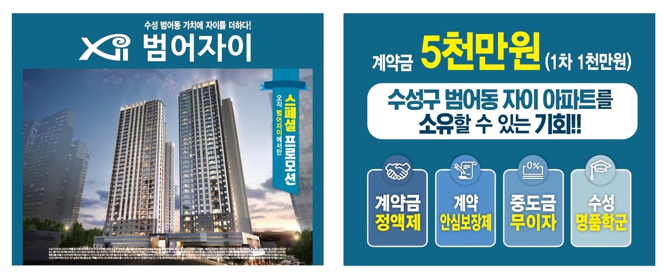 기존 완공된 만촌자이르네, 수성자이르에 이어 착공되는 세 번째 단지로 입주자들에게 범어자이르네에 대한 자부심을 심어주고 단지의 위상을 더욱 강화할 예정이다. 이러한 요소들을 고려하면 구매뿐만 아니라 투자 가치로도 상당히 높을 것으로 예상됩니다.