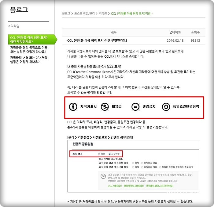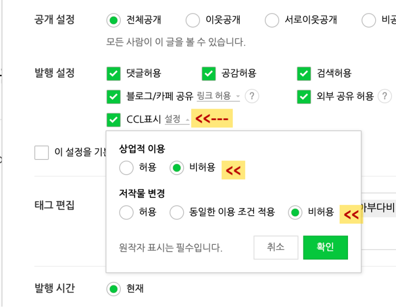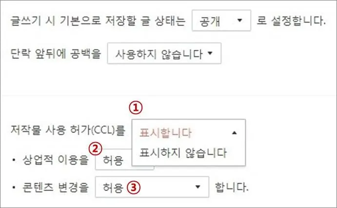 블로그 CCL 표시, 설정하시겠습니까?